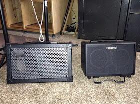 Having joined the dark side as a gearhead, I have recently upgraded my uke amp. What I had before was Roland's Street Cube, a small modeling amp designed for electric instruments. Has EFX for things like echo, flange, and other distortions. The new amp, the AC 33, is designed for acoustic instruments, and doesn't have that stuff.